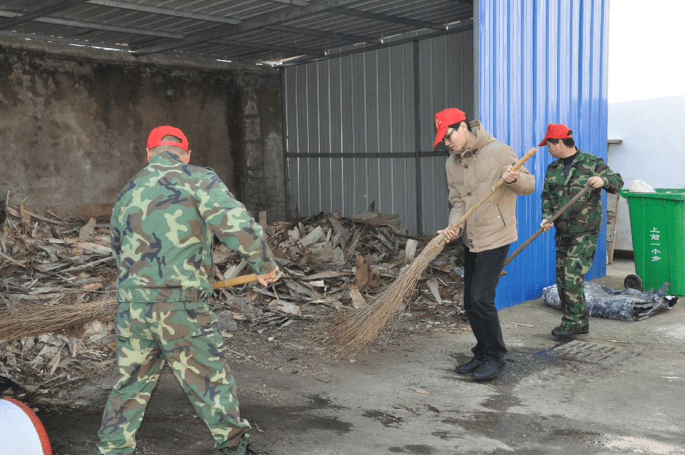 志愿者們清掃院子垃圾