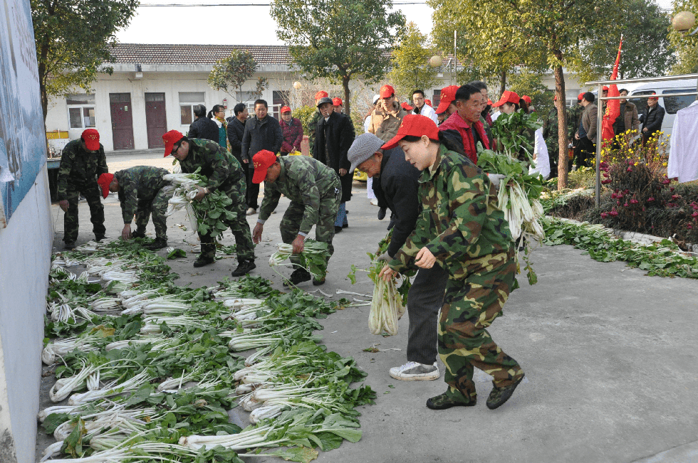 集團(tuán)志愿者們幫忙搬運(yùn)蔬菜