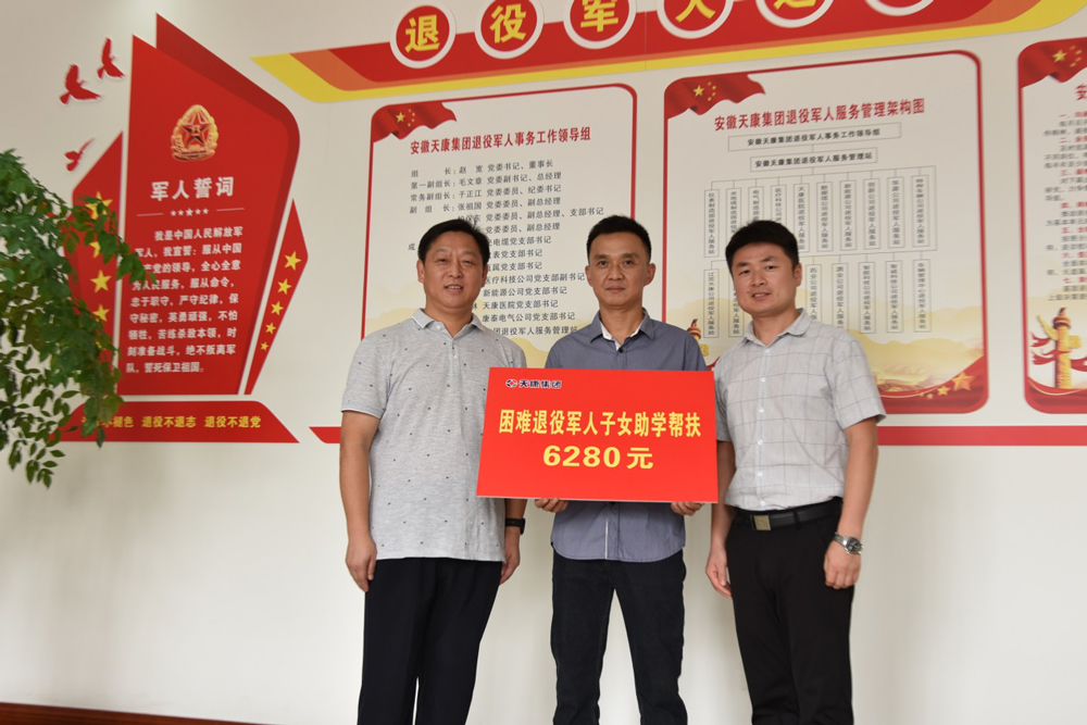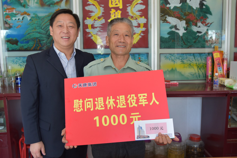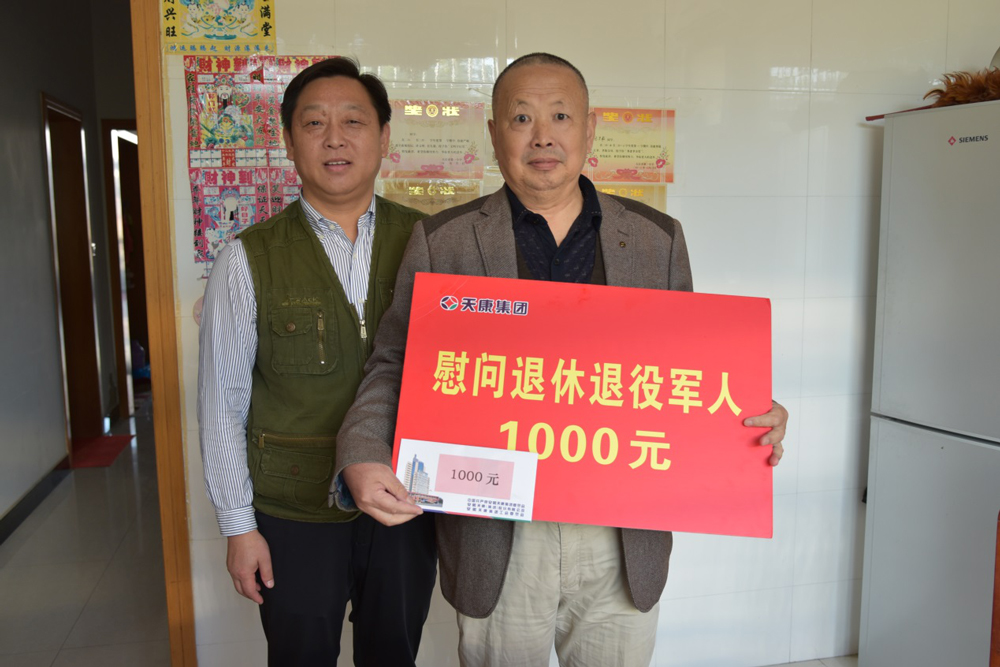 為進一步落實退役軍人相關政策,發揚擁軍優屬的光榮傳統,引導發揮退役軍人的工作積極性,在中秋、國慶雙節之際,安徽天康集團退役軍人服務管理站開展了“雙節慰問送關懷,情暖退役軍人心”活動,共走訪慰問10余名退役軍人,為困難退役軍人發放了子女助學款,到已退休的老退役軍人家中進行慰問并送上了節日慰問金,給他們帶去了集團的關懷和問候。