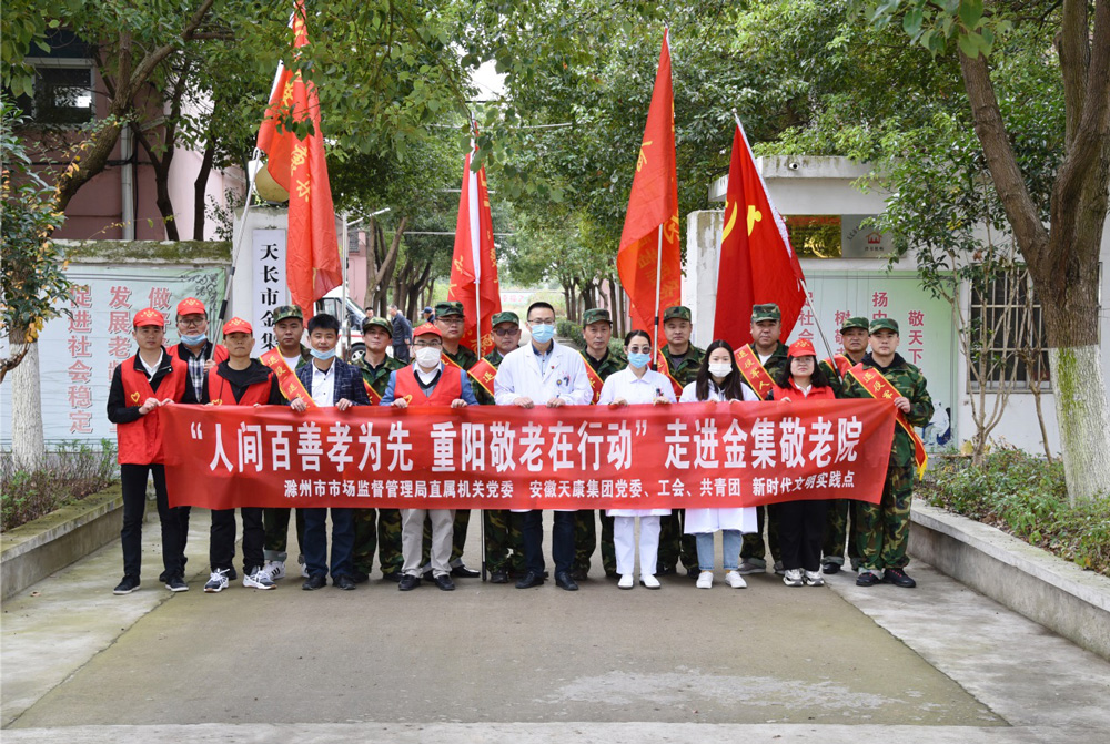 九九重陽節(jié),濃濃敬老情。為進一步弘揚中華民族尊老、敬老、愛老、助老的傳統(tǒng)美德,增強員工的奉獻意識和社會責(zé)任感,為社會帶來更多的正能量。10月29日,安徽天康集團組織20余名黨員、退役軍人、一線員工、醫(yī)護志愿者走進金集敬老院,開展“人間百善孝為先,重陽敬老在行動”慰問活動,為老人們送上了節(jié)日的祝福。