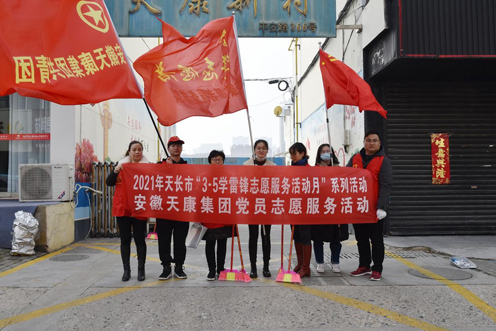 3月5日上午安徽天康集團黨委組織黨員開展“學雷鋒志愿服務活動”,旨在為弘揚和培育社會主義核心價值觀,傳播社會主義先進文化,深入推進學雷鋒志愿服務活動常態化開展,把廣大黨員培養成新時代雷鋒精神的傳播者、弘揚者和踐行者。