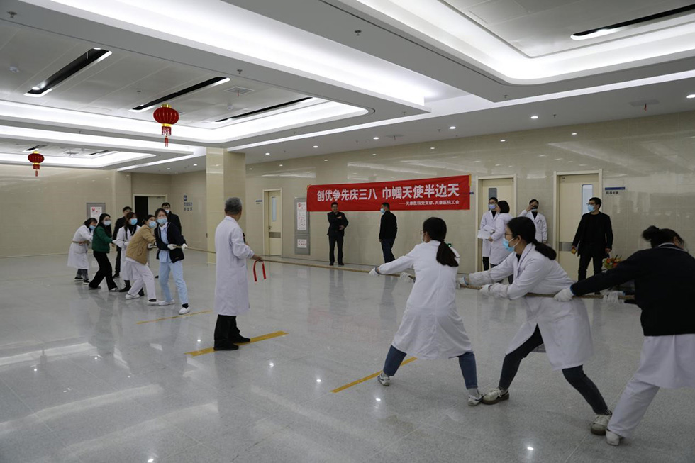 “三八”婦女節活動內容充實、形式多彩。天康醫院分工會舉辦了慢騎、呼啦圈、拔河比賽;光電纜分工會開展了拔河比賽、羽毛球比賽、趣味運動會;儀表分工會組織全體女工前往楊村鎮光華生態園賞花踏青,自助燒烤,并開展了“口口相傳”“一圈到底”“摸石過河”等互動小游戲。此外,集團工會還組織女職工觀看電影《奪冠》。