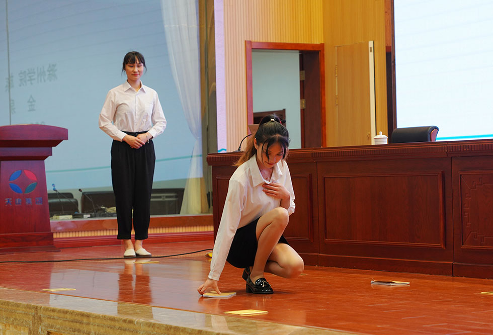 在下午的實(shí)操中,金老師把參訓(xùn)人員分為四組,由各組長帶領(lǐng)實(shí)踐練習(xí),不僅增強(qiáng)了參訓(xùn)人員的積極性和參與性,而且使參訓(xùn)人員加深了對商務(wù)禮儀知識的理解和運(yùn)用。整個培訓(xùn)現(xiàn)場洋溢著激情與歡樂,大家在熱烈高漲的學(xué)習(xí)氛圍中掌握了許多實(shí)用性極強(qiáng)的社交禮儀知識,加強(qiáng)了相互間的了解與溝通,效果十分突出,大家紛紛表示經(jīng)過一天的真學(xué)實(shí)訓(xùn),收獲滿滿。