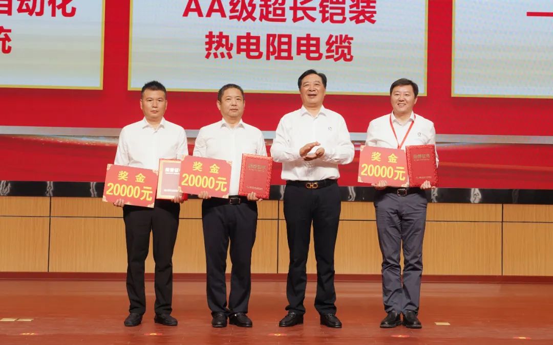 會議為獲得2021年度“安徽省五一勞動獎章”和 “安徽省青年崗位能手”的光電纜制造部的蔣士虎、李加龍兩位員工頒發了證書;并為2021年度集團先進科技工作者、優秀工匠、全國勞模創研中心獲獎項目及在疫情防控工作中表現突出的先進集體、先進個人與優秀志愿者,以及第三批“百人培育計劃”入選人員頒發了獎品和證書。