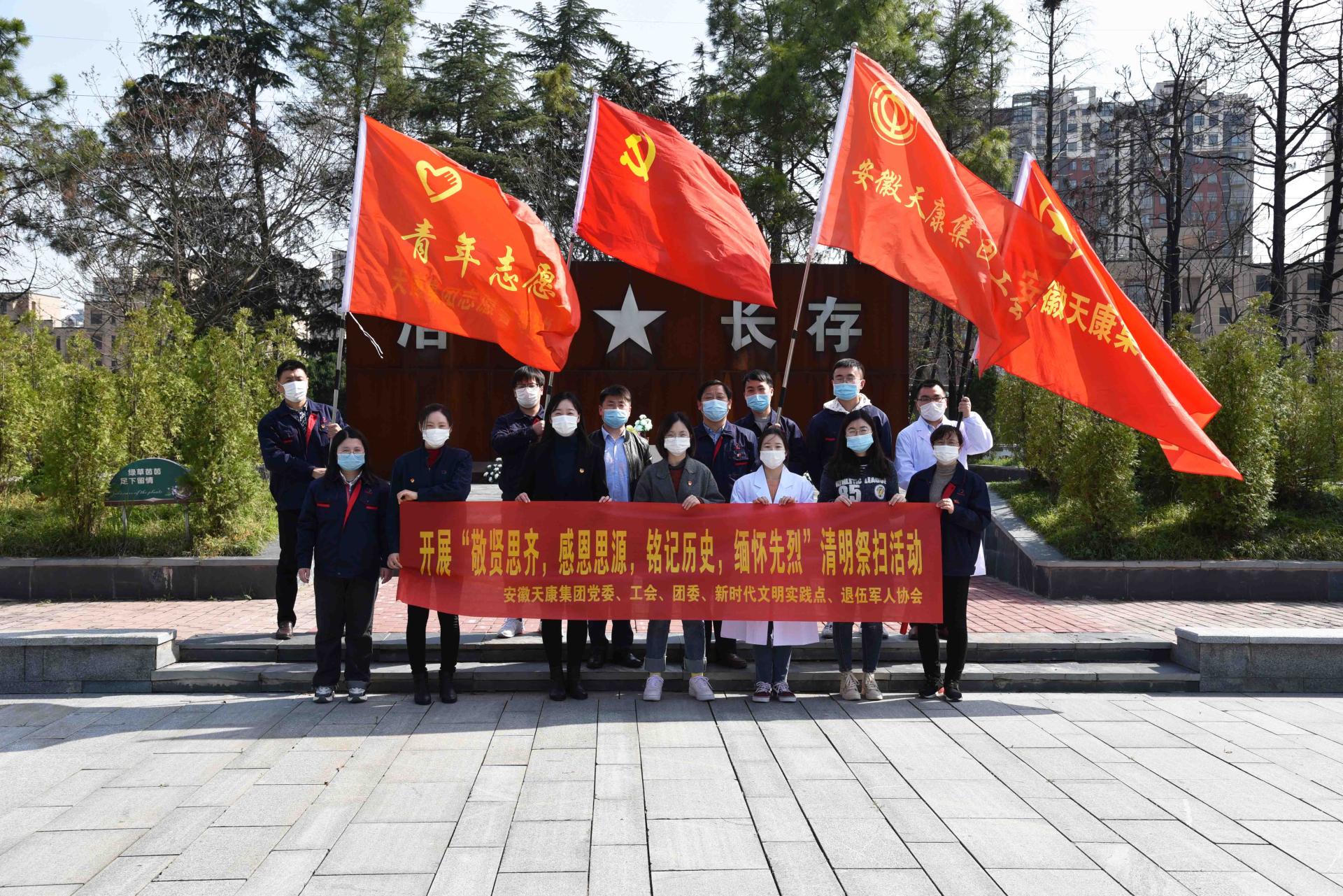 為加強愛國主義和革命傳統教育,深切緬懷革命先烈,4月2日,安徽天康集團黨委、工會、團委、新時代文明實踐點、退伍軍人協會共同組織黨員、團員和志愿者15人來到天長市烈士陵園,開展以“敬賢思齊,感恩思源,銘記歷史,緬懷先烈”為主題的清明祭掃活動,接受愛國主義精神洗禮。