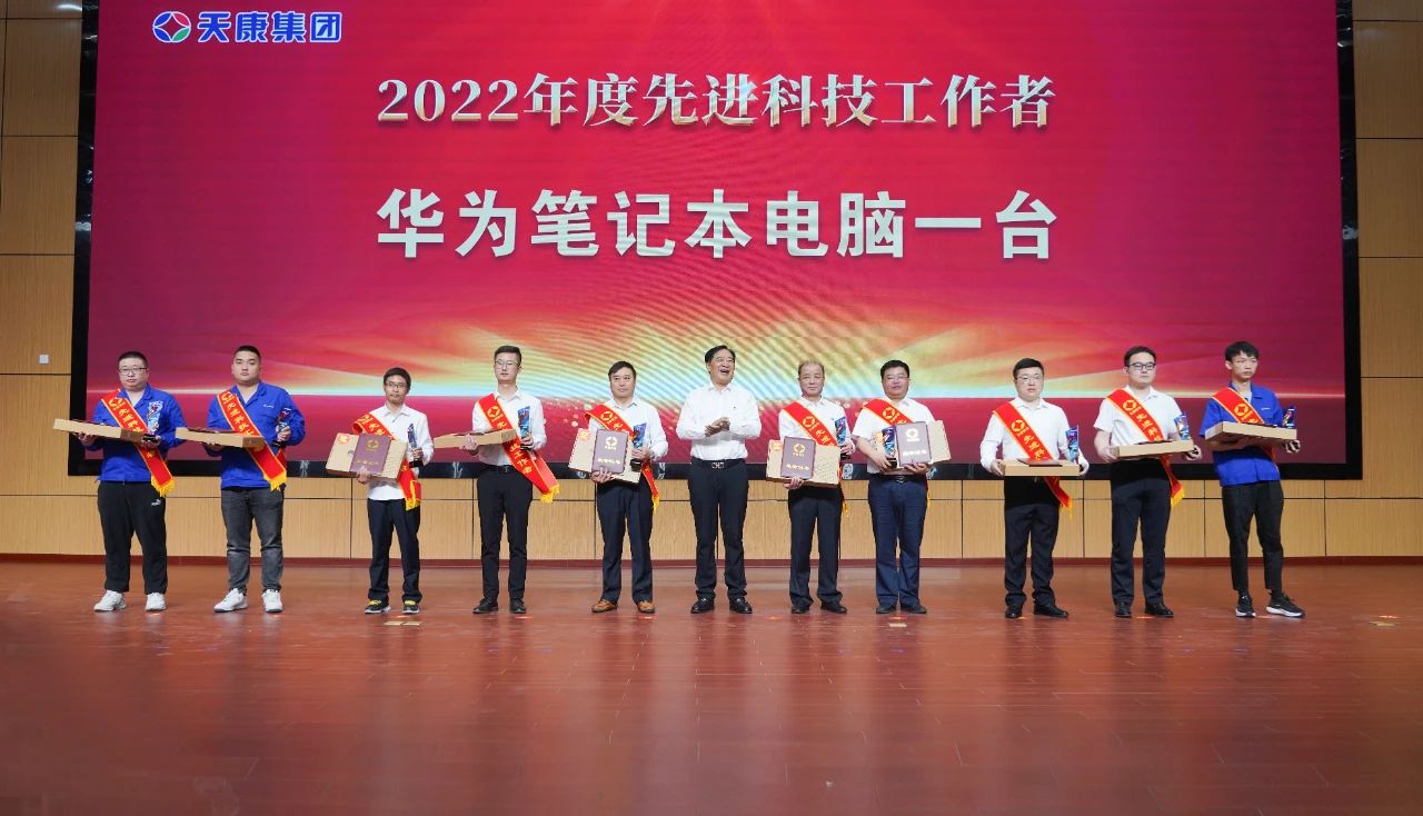 在隨后舉行的安徽天康集團第二屆科技和人才大會上,集團黨委副書記、副總經理趙建兵宣讀了集團表彰文件;集團副總經理柏保東宣讀了創研項目表彰文件。會議為獲得2022年度最佳創新獎、最佳技改獎一、二、三等獎項目團隊頒獎,同時為獲得2022年度先進科技工作者、第三屆職業技能競賽獲獎選手頒獎;會議匯報了2023年科研項目及重點項目入庫情況。