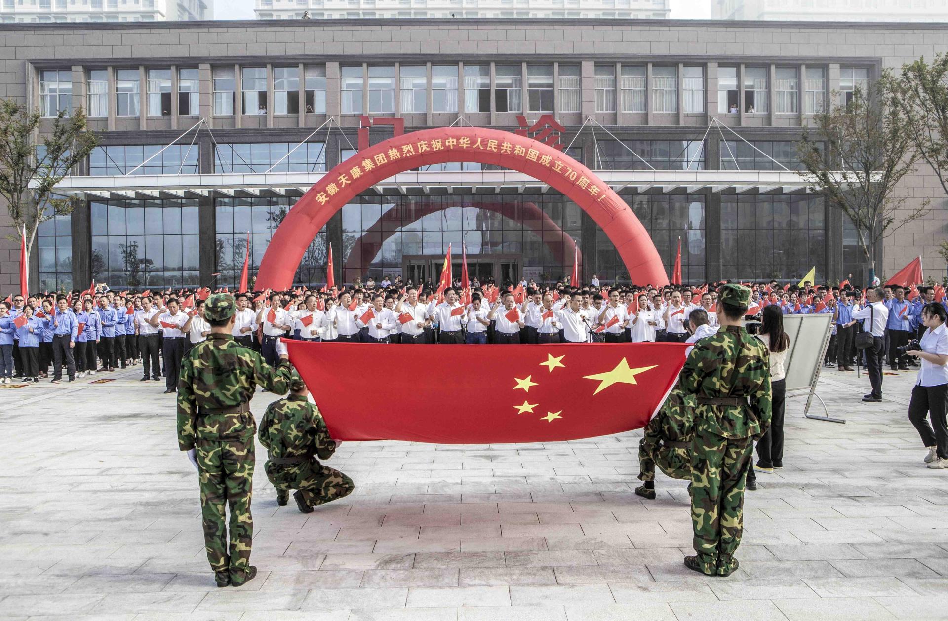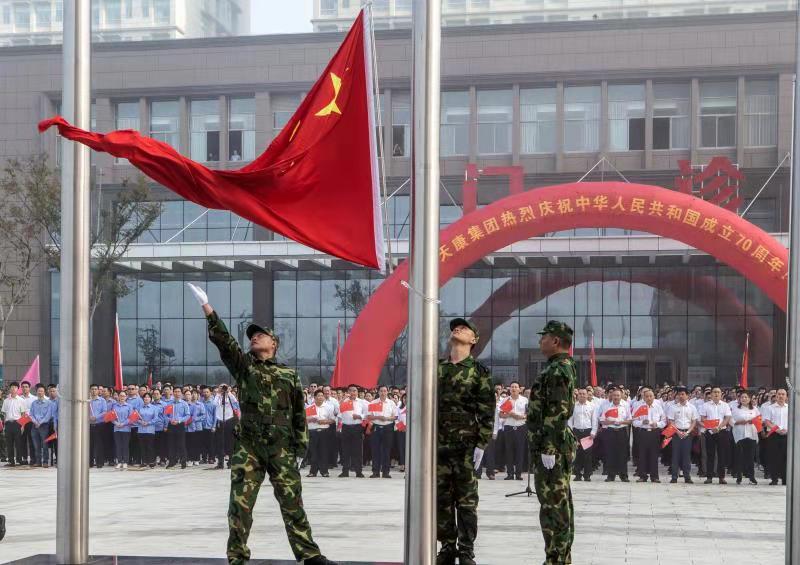 為慶祝中華人民共和國成立70周年,歌頌偉大祖國母親,9月29日上午,在集團(tuán)黨委的領(lǐng)導(dǎo)下,集團(tuán)“兩辦”、工會(huì)、共青團(tuán)、文宣部、新時(shí)代文明實(shí)踐點(diǎn)在南市區(qū)天康醫(yī)院廣場(chǎng)聯(lián)合舉行了以“向國旗致敬,祖國在我心中”為主題的大型升旗儀式。集團(tuán)領(lǐng)導(dǎo)、全體黨員、銷售副總、銷售經(jīng)理、副部級(jí)以上管理人員、優(yōu)秀職工代表等近千余人參加了升旗儀式。 上午8點(diǎn),伴隨著雄壯的國歌,升旗手把國旗拋向空中,五星紅旗冉冉升起,全體黨員、干部和職工肅立站好,行注目禮。隨后,在黨委副書記、總經(jīng)理毛文章的帶領(lǐng)下,全體人員右手握拳,面向國旗莊嚴(yán)宣誓。鏗鏘有力的錚錚誓言,恢弘響亮的聲音響徹廣場(chǎng),感染了在場(chǎng)每一位員工干部。 活動(dòng)中,集團(tuán)黨委書記、董事長趙寬發(fā)表了重要講話,表達(dá)了對(duì)祖國70華誕的熱烈祝賀。并強(qiáng)調(diào),國家強(qiáng)大企業(yè)才能興旺,大家要不忘初心,牢記使命,全身心的投入到建設(shè)天康、發(fā)展天康的工作中。