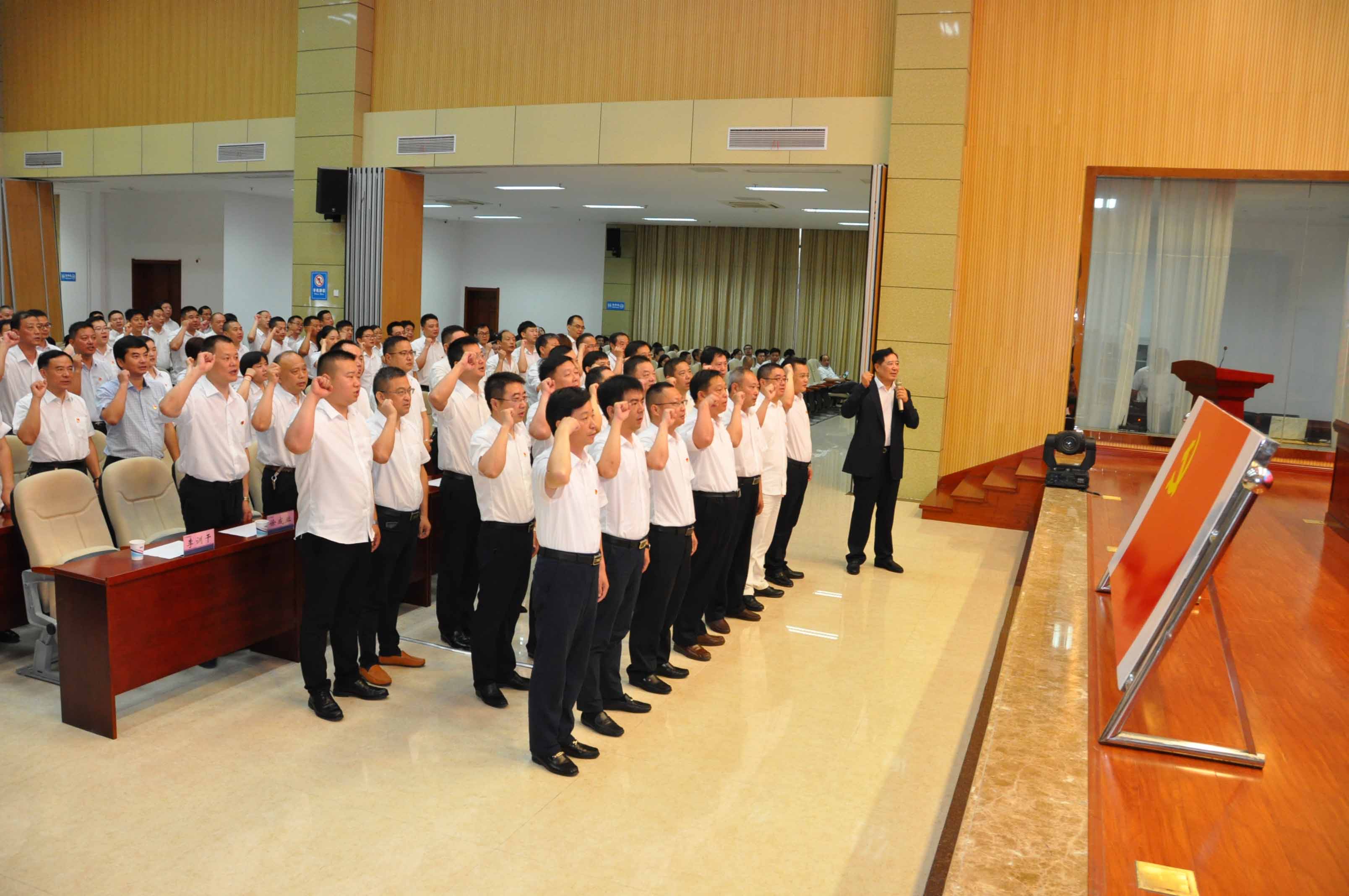 會(huì)上,集團(tuán)黨委書記、董事長(zhǎng)趙寬同志帶領(lǐng)全體黨員面向黨旗重溫入黨誓詞,增強(qiáng)黨員黨性意識(shí)。集團(tuán)黨委副書記趙建兵同志宣讀了集團(tuán)《關(guān)于表彰2018年度“兩先”、“兩優(yōu)”和“兩示范”的決定》,集團(tuán)領(lǐng)導(dǎo)為受到表彰的先進(jìn)集體和優(yōu)秀個(gè)人進(jìn)行了頒獎(jiǎng)。