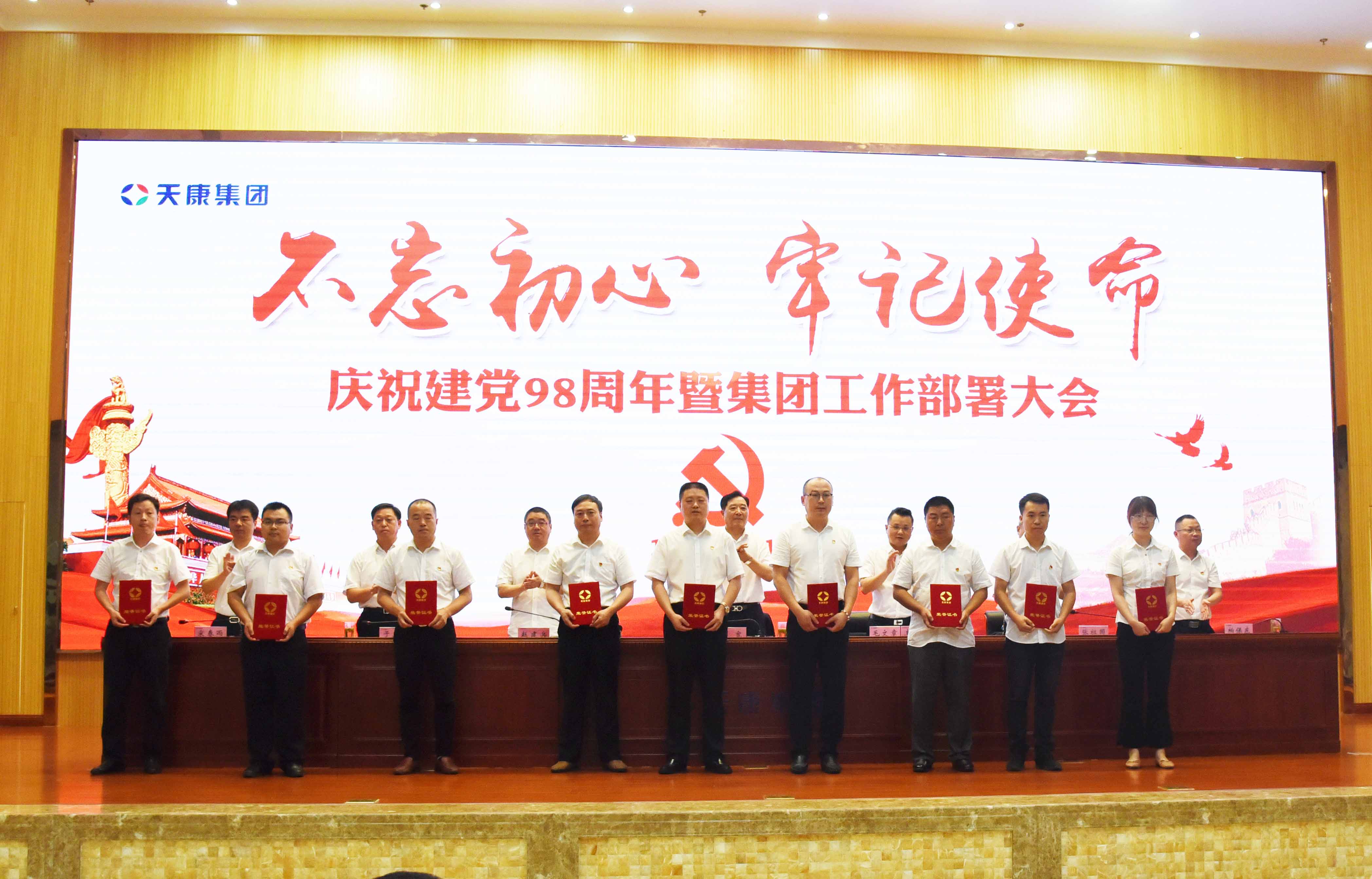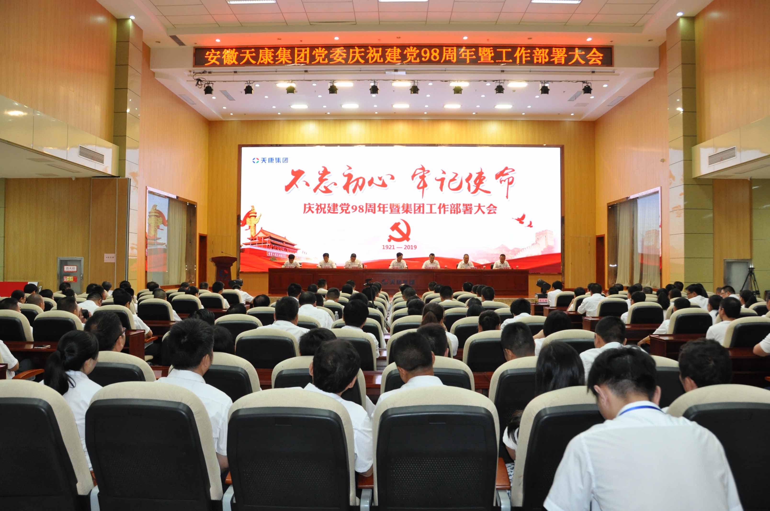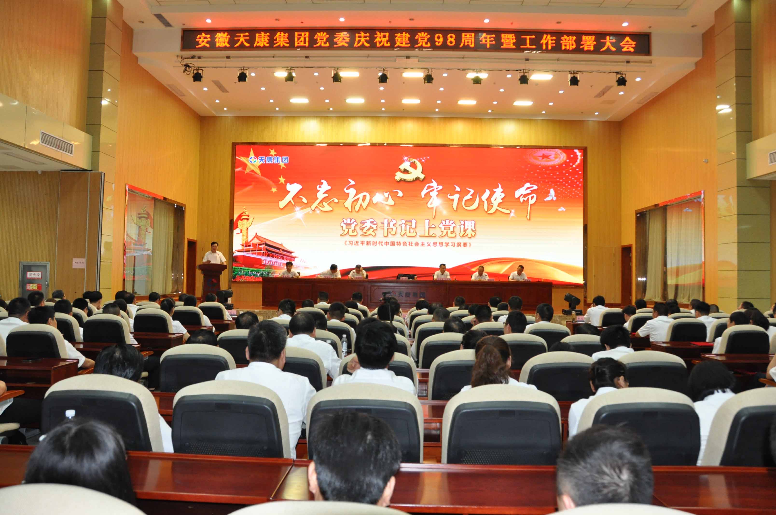 6月29日,安徽天康集團(tuán)黨委在會(huì)議中心隆重召開“不忘初心、牢記使命”慶祝建黨98周年暨集團(tuán)工作部署大會(huì)。集團(tuán)全體黨員、入黨積極分子、團(tuán)員、全體銷售經(jīng)理、新醫(yī)院全體股東等500余人參加會(huì)議,江蘇天康全體黨員也列席了本次會(huì)議。大會(huì)由集團(tuán)黨委副書記、總經(jīng)理毛文章主持。