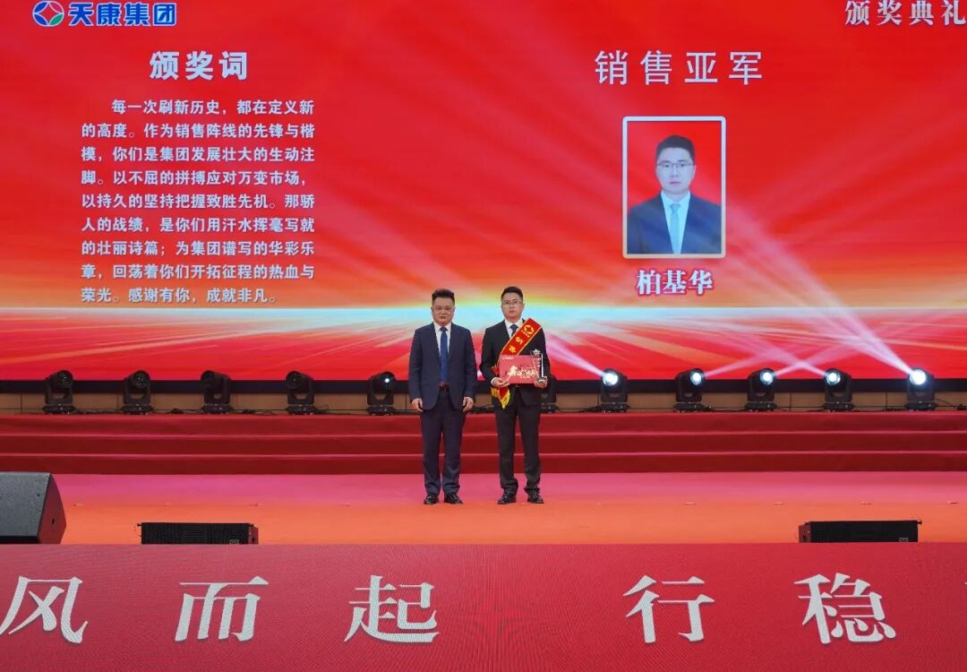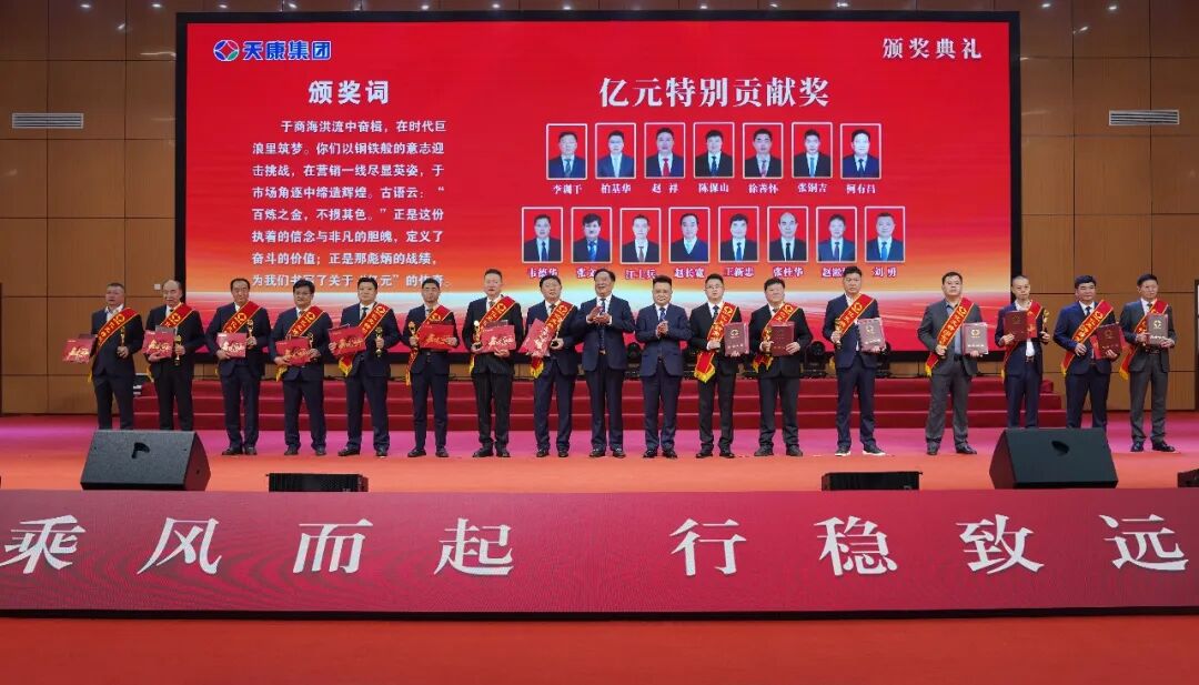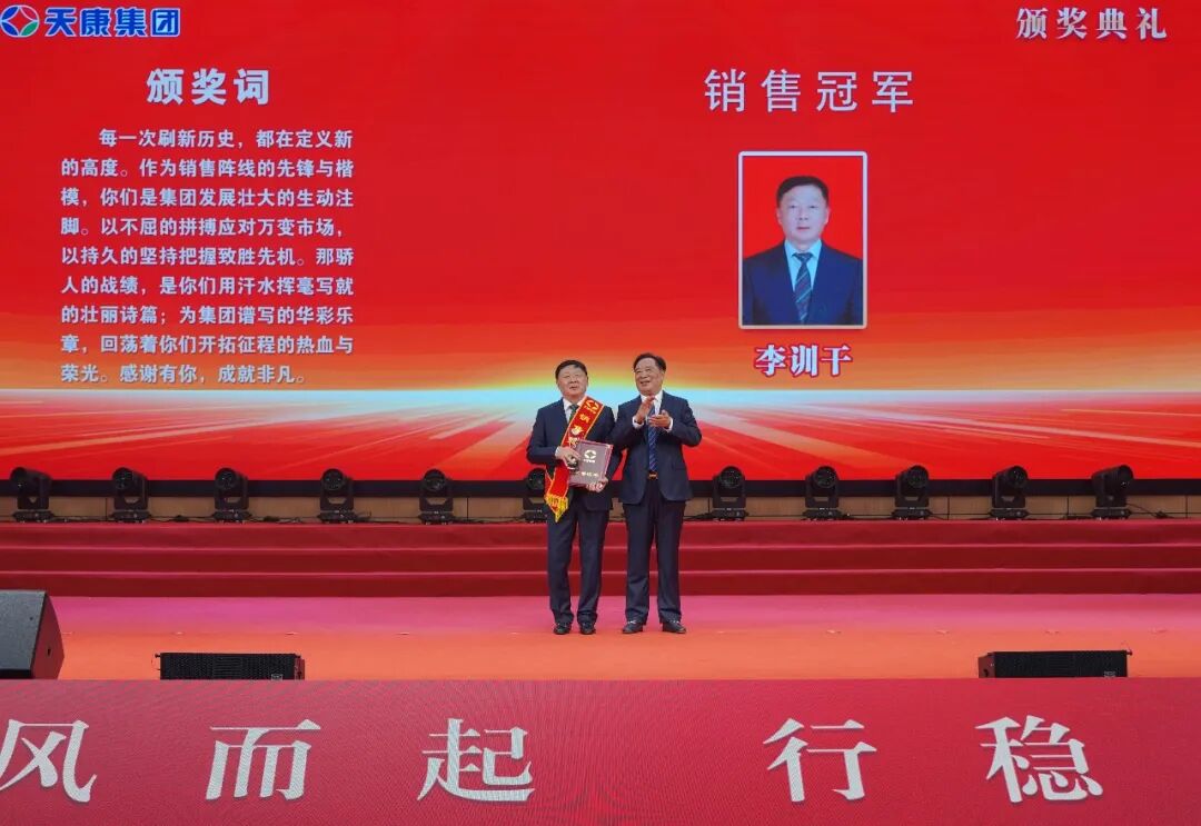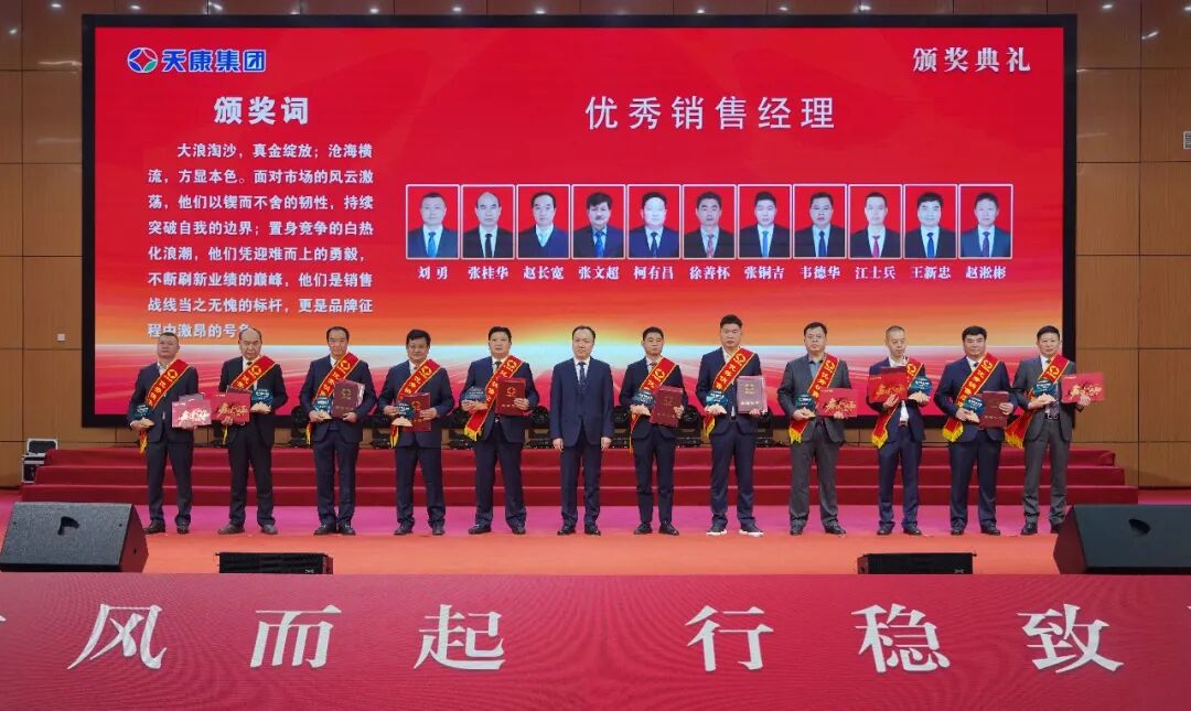 會議同時為銷售冠、亞、季軍,億元特別貢獻獎、優秀銷售經理、先進銷售經理、銷售新星、行業銷售精英、主營單項銷售精英、銷售業績重大突破獎、大型客戶好評獎、國外市場拓展先進獎、新產品引進貢獻獎、執著奉獻獎、先進集體、天康工匠、先進生產工作者等頒獎。