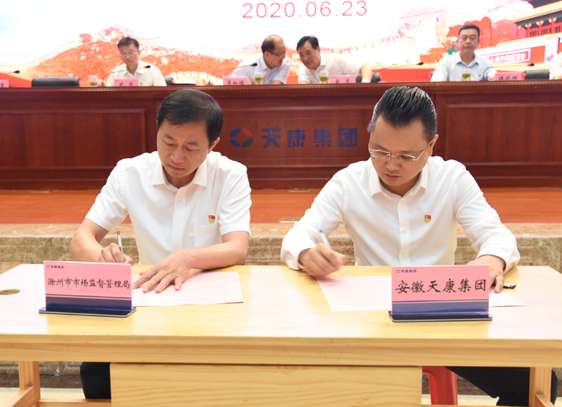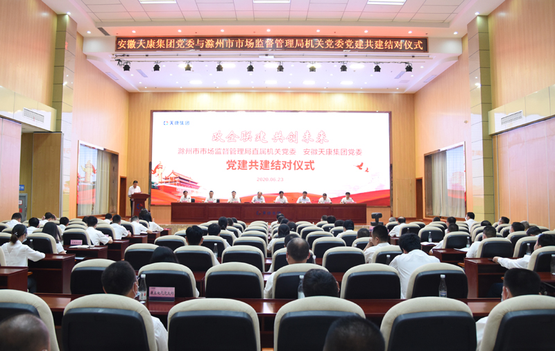 為實現黨組織優勢互補,政企共建攜手共贏。6月23日上午,滁州市市場監督管理局直屬機關工作委員會與安徽天康集團黨委在會議中心隆重舉行“黨建共建”簽約儀式,拉開了政企之間黨建共建的帷幕,齊心構建“資源共享、優勢互補、互相促進、共同提高”的黨建工作新格局。