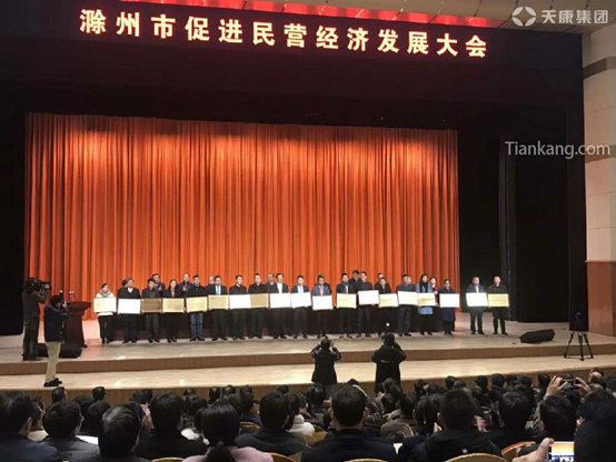 12月19日,滁州市促進民營經濟發展大會在滁州召開。安徽天康集團董事長趙寬作為民營企業代表應邀參加了會議。