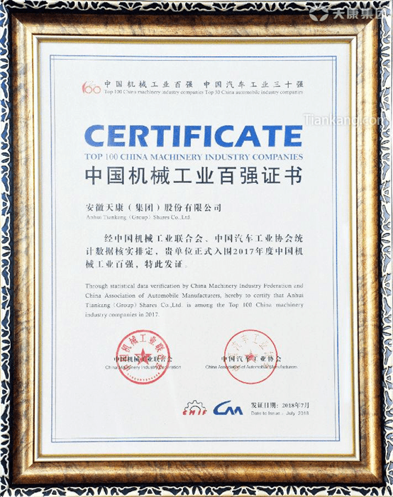 7月13日,第十四屆“中國(guó)機(jī)械工業(yè)百?gòu)?qiáng)”信息發(fā)布會(huì)在山東臨沂召開。會(huì)上,中國(guó)機(jī)械工業(yè)聯(lián)合會(huì)發(fā)布了2017年中國(guó)機(jī)械工業(yè)百?gòu)?qiáng)企業(yè)名單,安徽天康(集團(tuán))股份有限公司強(qiáng)勢(shì)登榜。自2014年以來(lái),集團(tuán)已連續(xù)四年榜上有名,這不僅是集團(tuán)綜合實(shí)力持續(xù)提升的體現(xiàn),更是一次中國(guó)機(jī)械工業(yè)的集中展示。