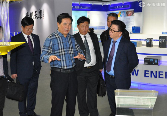 安徽應流集團杜應流董事長(中)在安徽天康集團董事長趙寬的陪同下參觀天康集團展覽中心。