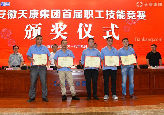 在頒獎儀式上,集團總經理毛文章充分肯定了本次競賽所取得的成績,對天長市人社局、市總工會、市經信委、市工業學校等相關部門的大力支持和指導表示感謝,對獲獎員工表示了祝賀。毛文章指出,在集團大力提倡弘揚工匠精神,重視科技創新,尊重技能人才的背景下,我們舉辦了天康集團首屆職工技能競賽,旨在提高員工綜合素質,營造廣大員工學習技術、愛崗敬業的熱情氛圍。下一步我們要將技能競賽與職工培訓相結合,要將技能競賽與文化建設向結合,要將技能競賽與評優評先相結合,全力推進集團的創新創研工作。也希望集團全體員工能積極投入到集團創新創研的工作中,為集團的持續、健康、穩定、高效發展做出應有的貢獻。