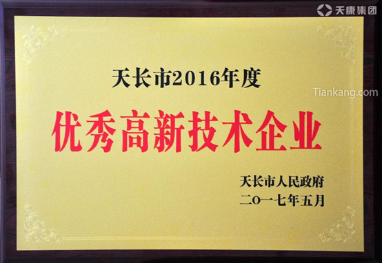 集團榮獲天長市2016年度優秀高新技術企業榮譽稱號