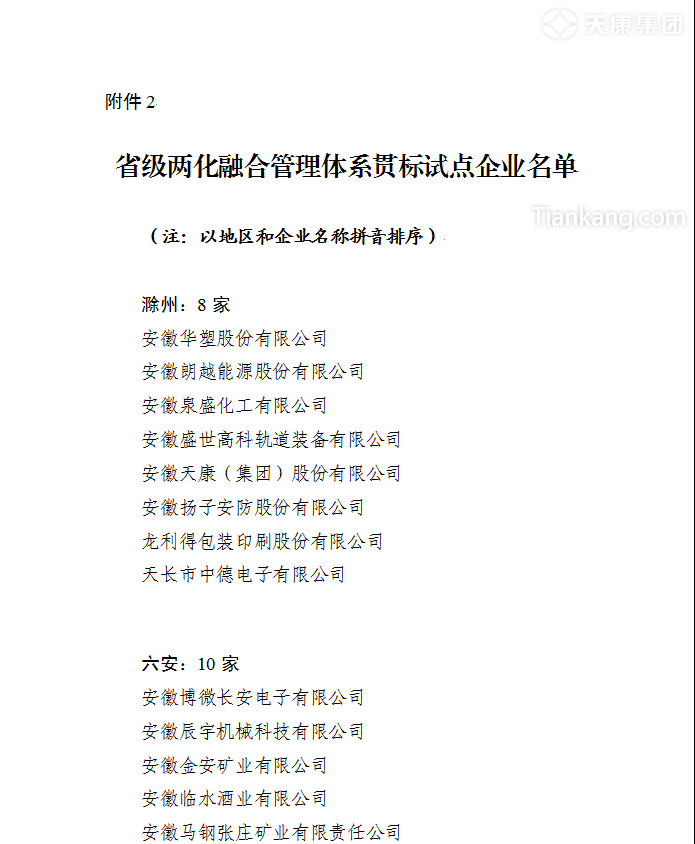 9月14日,省經信委公布了2016年省級兩化融合管理體系貫標試點企業名單,安徽天康(集團)股份有限公司名列其中。 “兩化融合”是信息化和工業化的高層次的深度結合,是一個系統工程,它是指以信息化帶動工業化、以工業化促進信息化,走新型工業化道路。核心就是信息化支撐,追求可持續發展模式,其對構建企業核心競爭力、提升產業升級和加速企業做大做強具有巨大的推動作用。 作為安徽省骨干企業,長期以來,安徽天康(集團)股份有限公司立足現狀,圍繞發展目標,根據安徽省信息化建設發展規劃和要求,加快信息技術在研發設計、智能制造、現代管理方面的應用,把“創新”作為自身發展的核心競爭力,堅持管理創新、技術創新和產品創新,不斷加大信息化建設力度,堅持不懈推進信息化實踐,在提升公司管理、優化流程、提高效率、促進創新等方面均發揮了巨大作用。 此次被省確定為兩化融合管理體系貫標試點企業,是對公司信息化工作持續深化發展的激勵和促進。安徽天康將以此為契機,進一步推進信息化建設,不斷提升公司信息化應用管理水平,切實發揮示范帶動作用,從而不斷推進公司創新發展,提高公司核心競爭力。