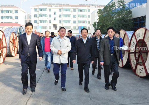 天康集團執行董事長趙建兵(左二)的陪同下深入天康集團光電纜工業園區調研工作