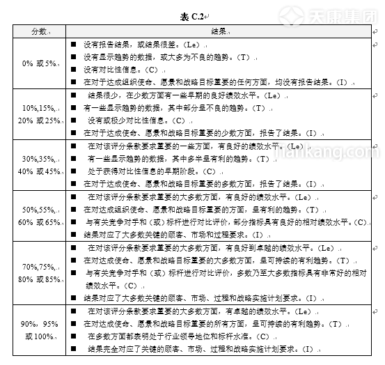 “結(jié)果”評(píng)分條款評(píng)分指南見表C.2。