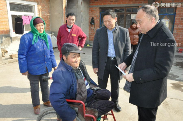 集團黨委副書記、工會主席閔玉軍(左一)了解困難戶情況