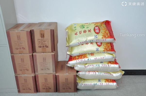 天康集團為村民困難戶送去的部分白酒和大米