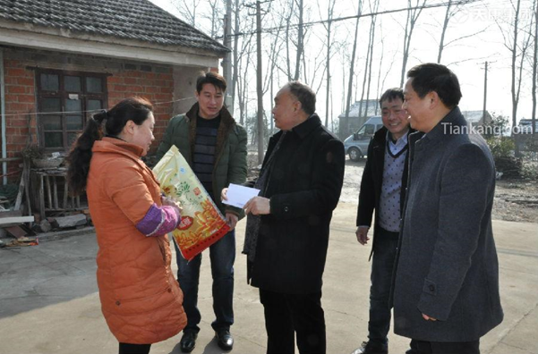 為深入貫徹落實市委、市政府的相關文件精神,重大節(jié)日來臨之前,慰問困難職工和特困群眾,努力構建社會主義和諧社會,經(jīng)集團黨委聯(lián)席會議研究決定,集團積極開展參予“幫扶共建履行社會責任”活動,2月1日集團黨委、工會以及團委相關領導,來到蘇橋村困難村民家中進行慰問,并為21戶特困村民送去每戶5000元的慰問金以及食用油和其他物品的年貨,讓困難群眾度過一個愉快、祥和的春節(jié)。