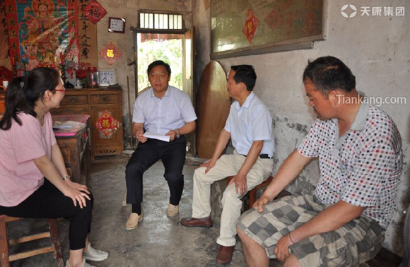 集團(tuán)黨委辦主任于正江(中)了解特困家庭生活、生產(chǎn)情況